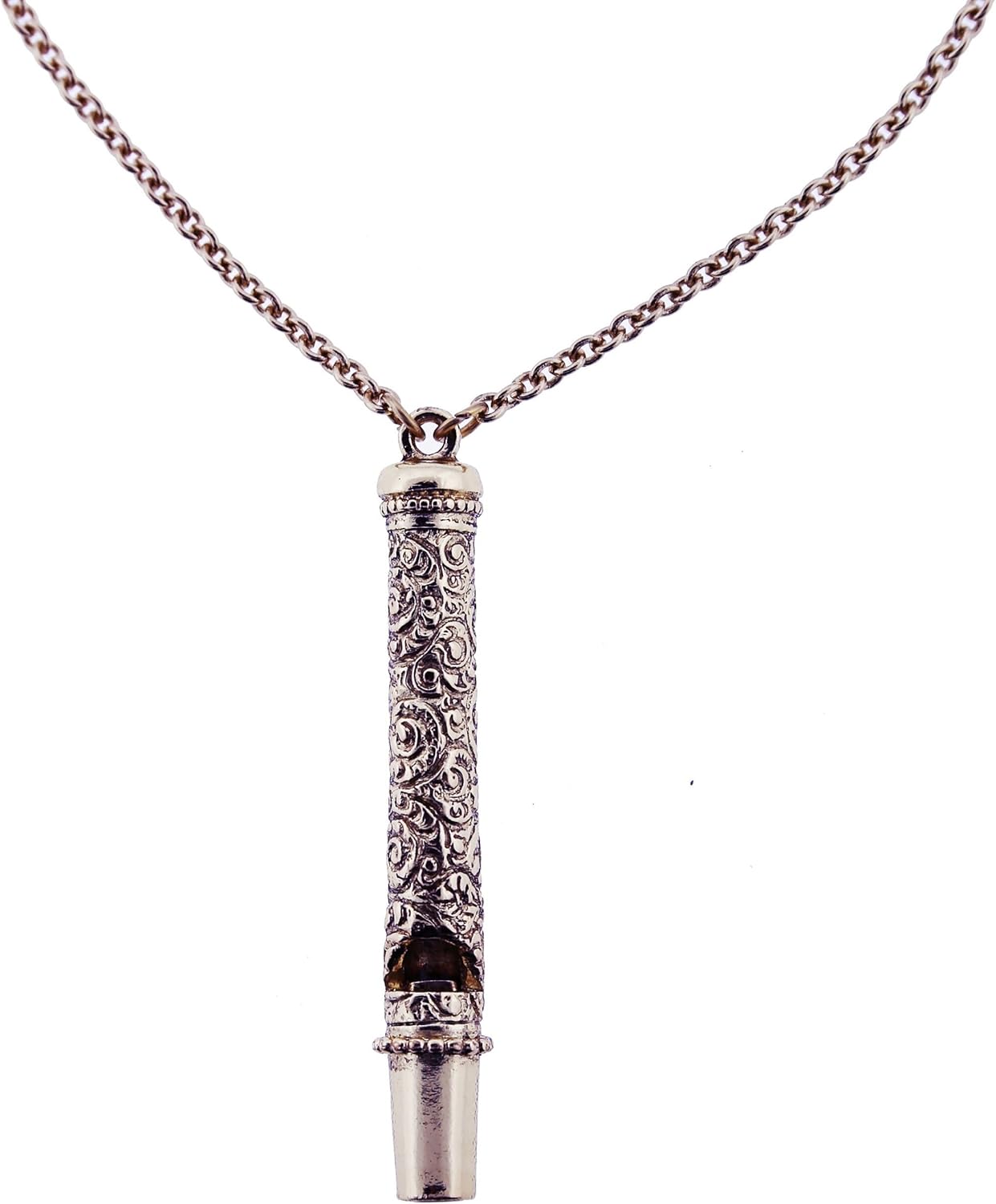 and it was a really long silver whistle with some type of embroidery (like Victorian style).The best I could find on the internet was this: